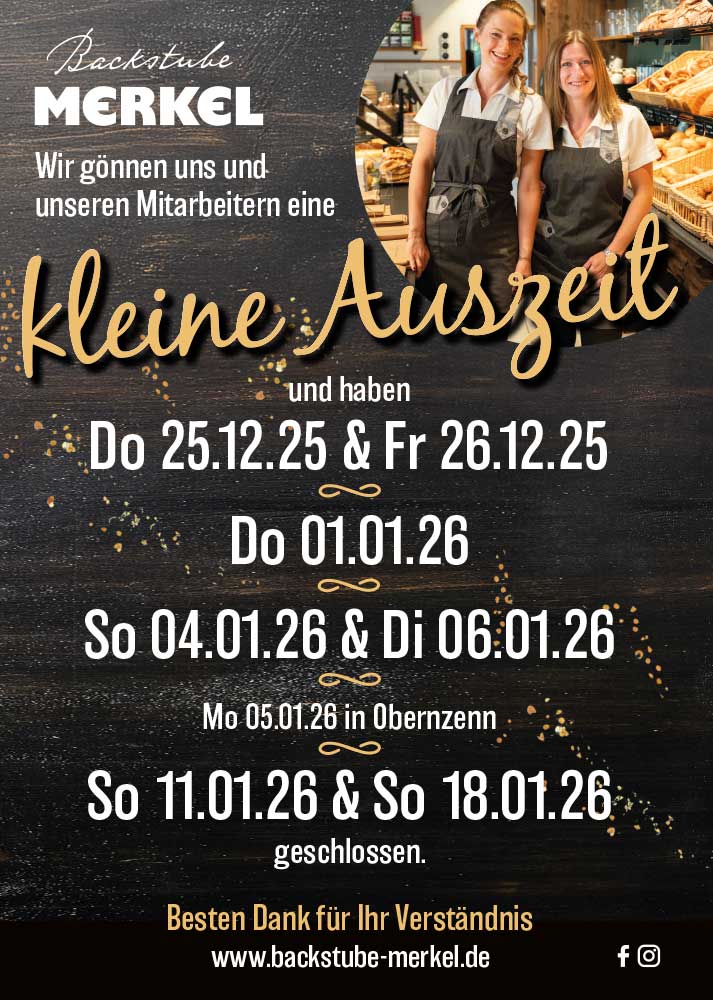 Bitte beachten Sie unsere kleine Auszeit an den Sonn- und Feiertagen im Dezember und Januar.